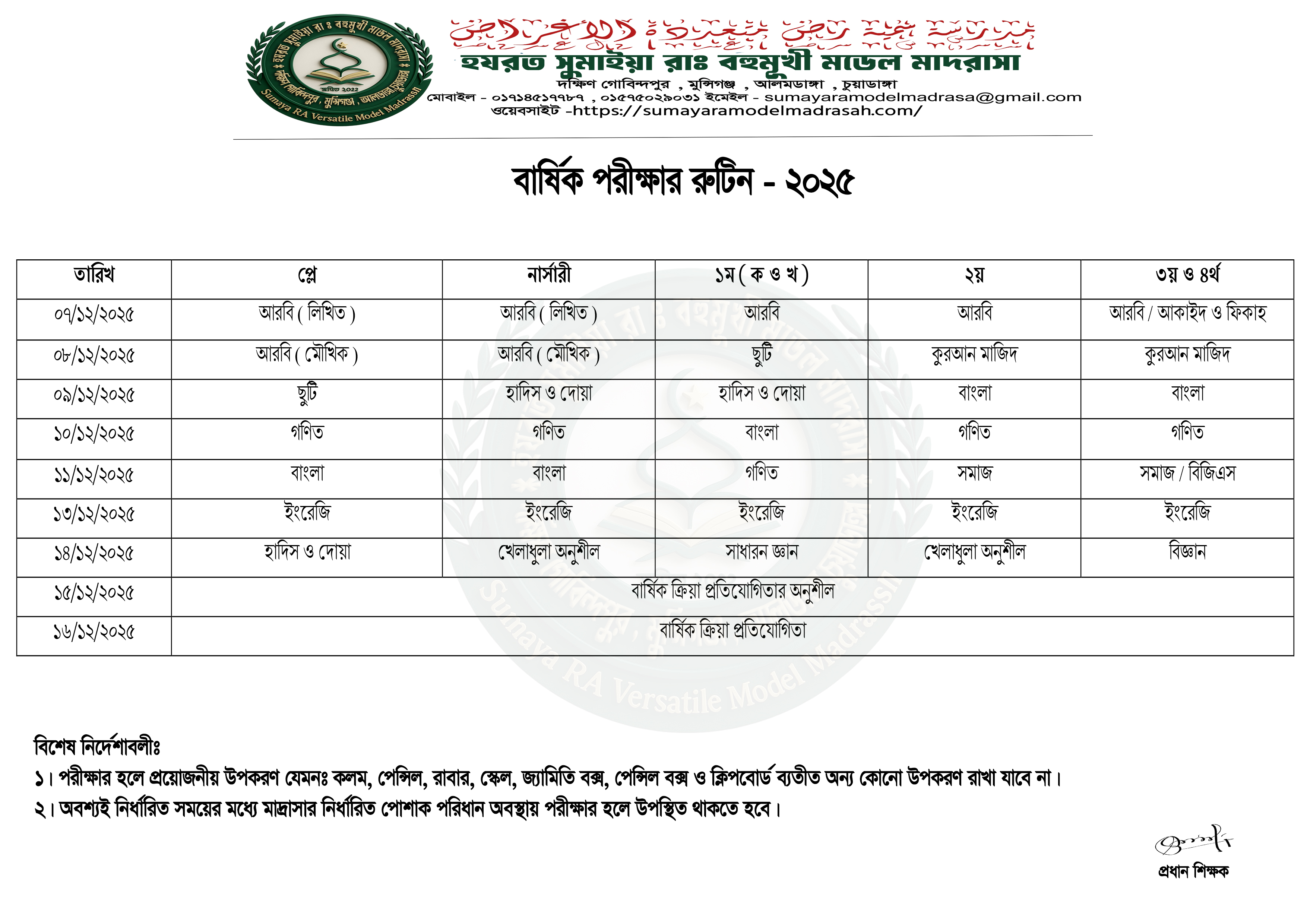 বার্ষিক পরীক্ষা সম্পর্কিত নোটিশ।